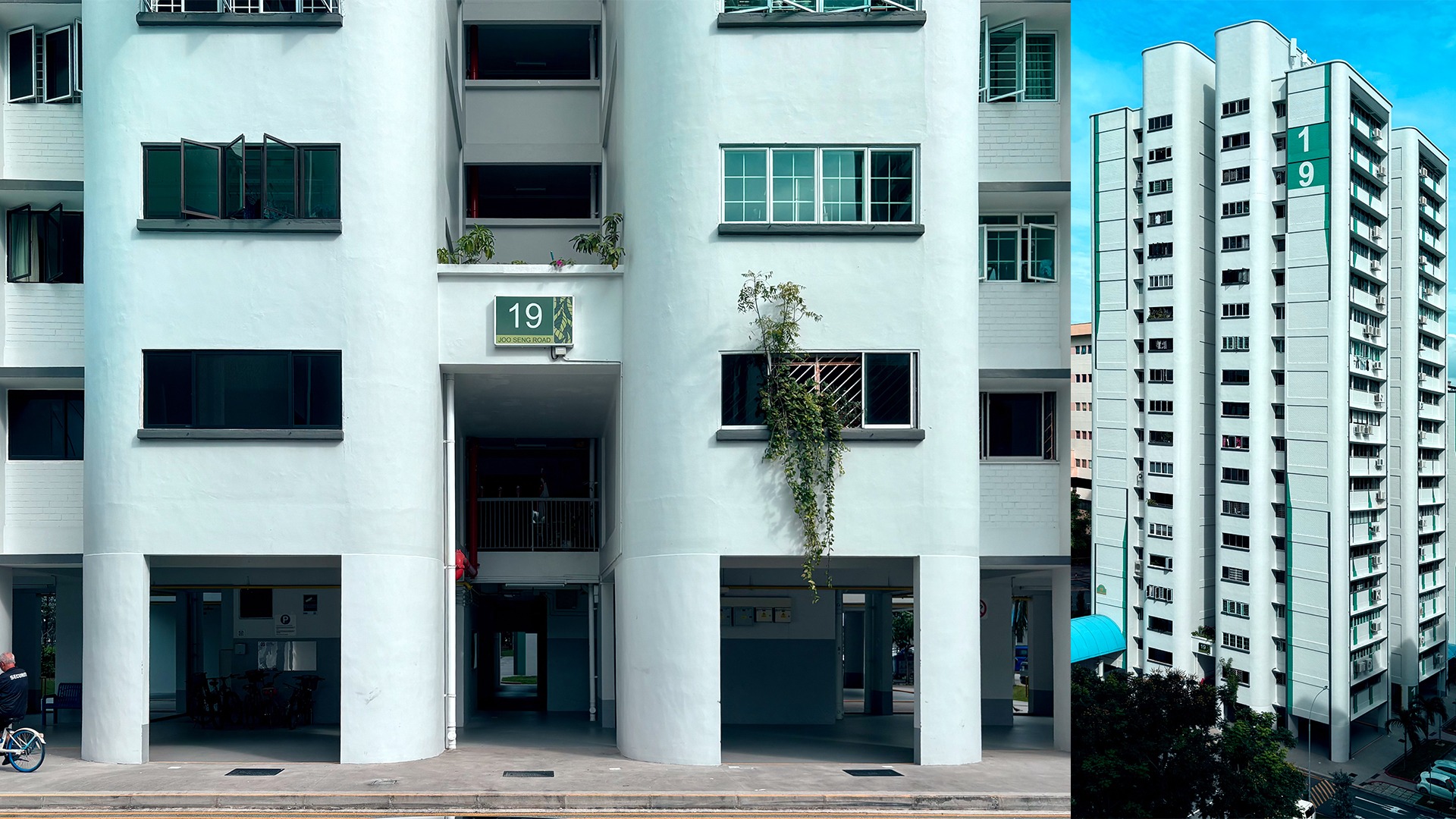 The conjoined H-shaped buildings have a sloped roof similar to HDBs of Potong Pasir