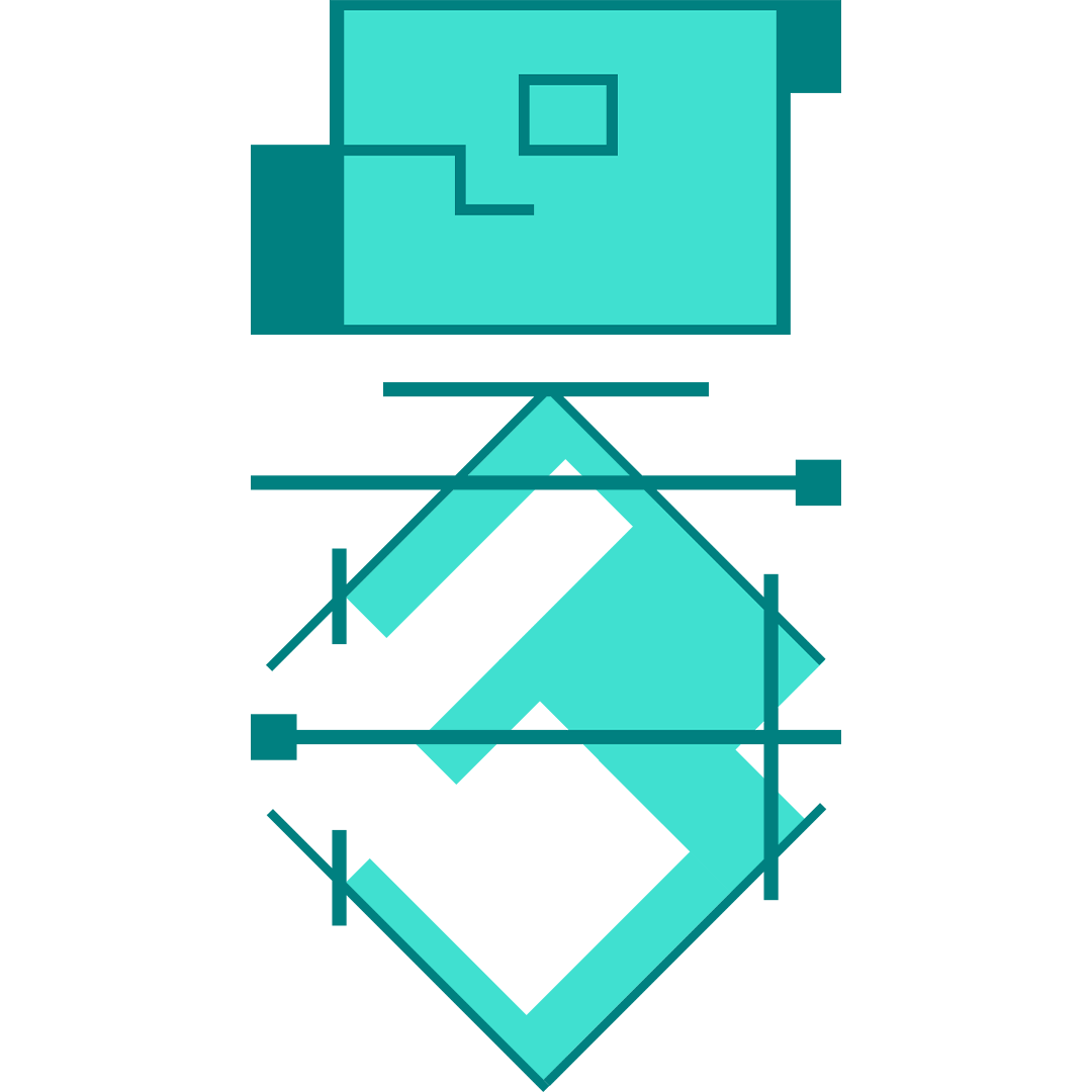 As per its "blocky" teal-to-turquoise colored design