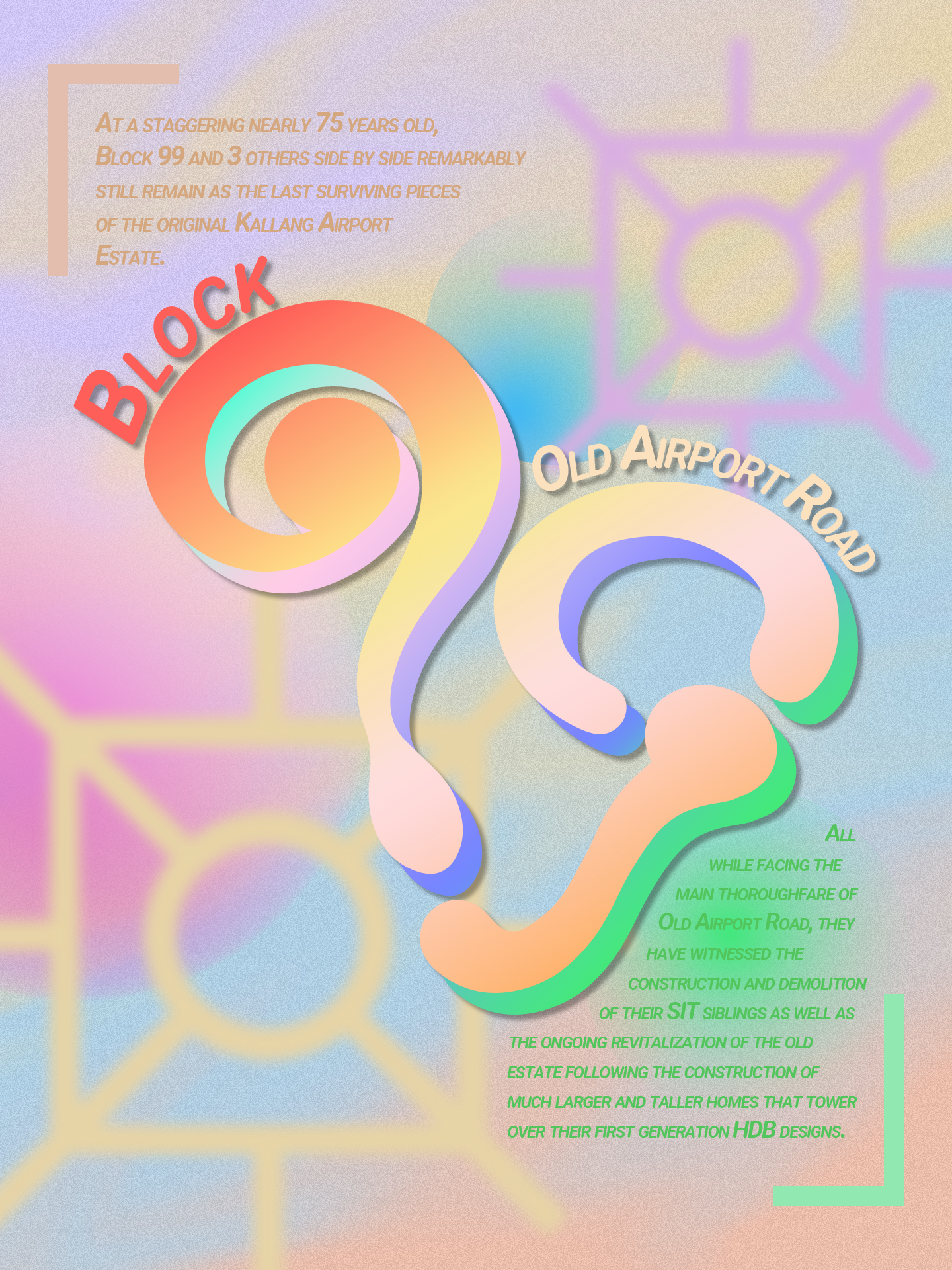 From blocks 1-100, every block is represented through their photos and bespoke typographic marks, forming a visual archive that captures both the architecture and the spirit of these still-standing houses.